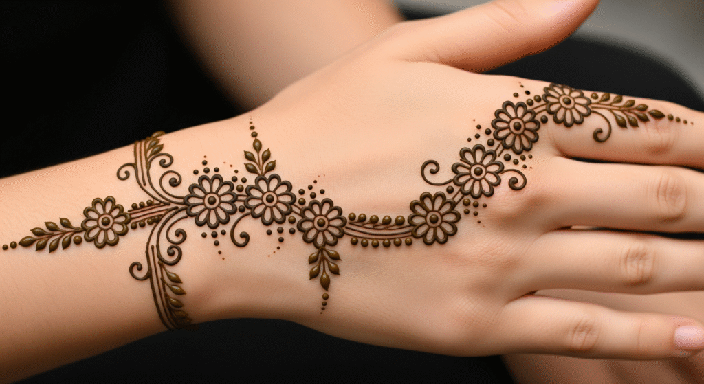 Whew, from daisy dreams to chain-link chic, these 25 expanded visions should have your creative juices flowing! Each one’s a canvas for your twist—mix categories, scale ’em up, or DIY with friends for that bonded glow. Remember, fresh henna’s key for that lasting (but not forever) magic. Which paragraph sparked your next design? Spill in the comments—we’re all ears (and inky fingers). Stay inspired, stay you!